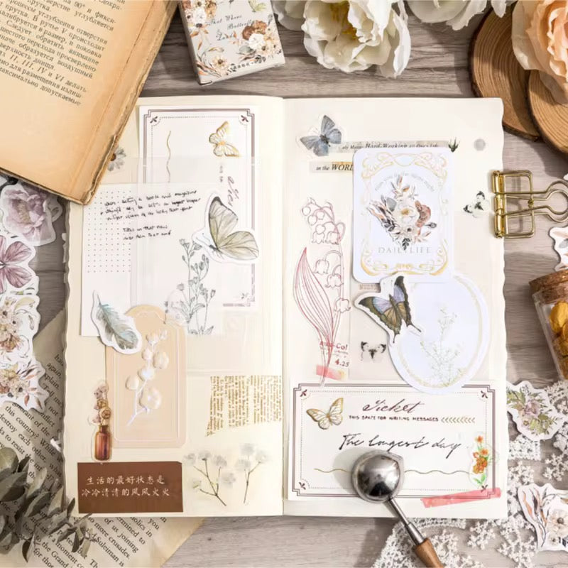 Retro Floral and Butterfly Waterproof UV Resistant sticker ( 1 pack - 46 piece )