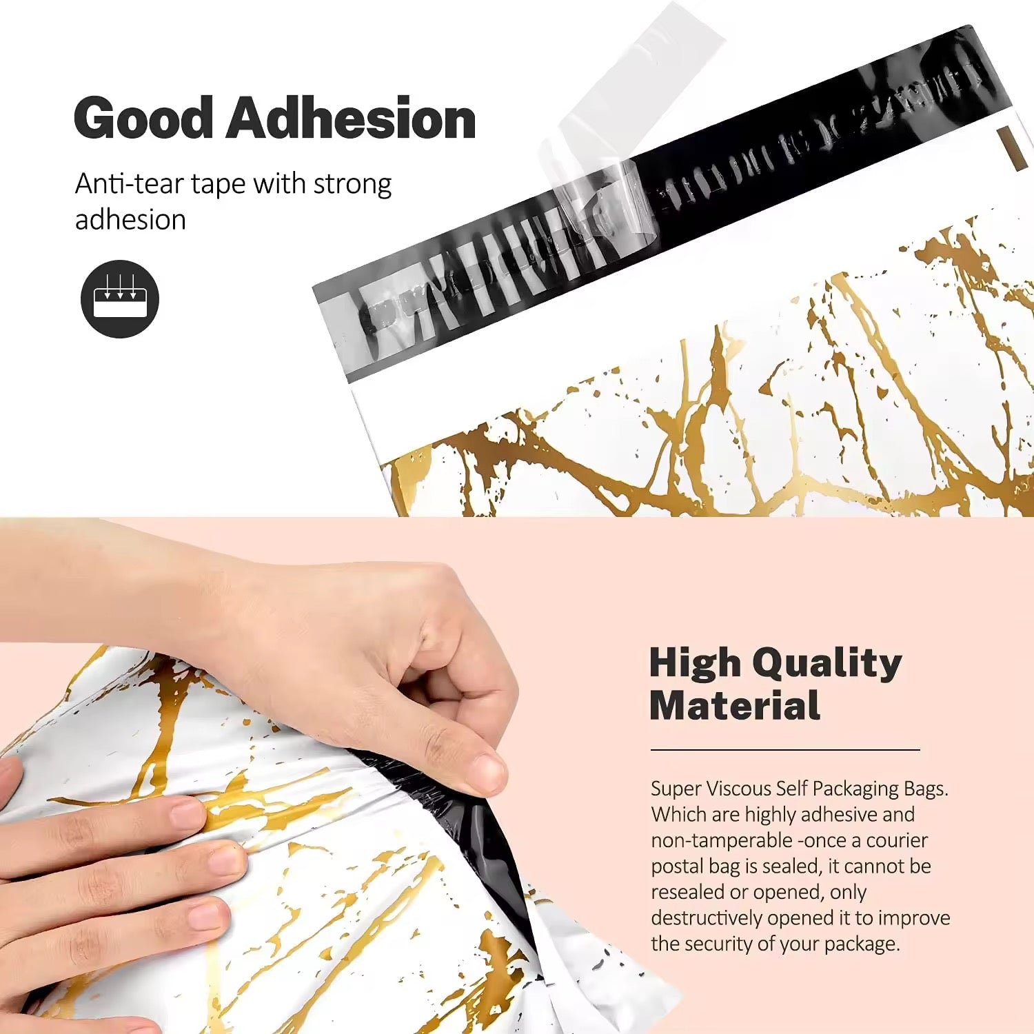 Thank You Marble Poly Mailer Bag - Waterproof & Double Sided - Designer Premium Packaging ( 10:13 inch )