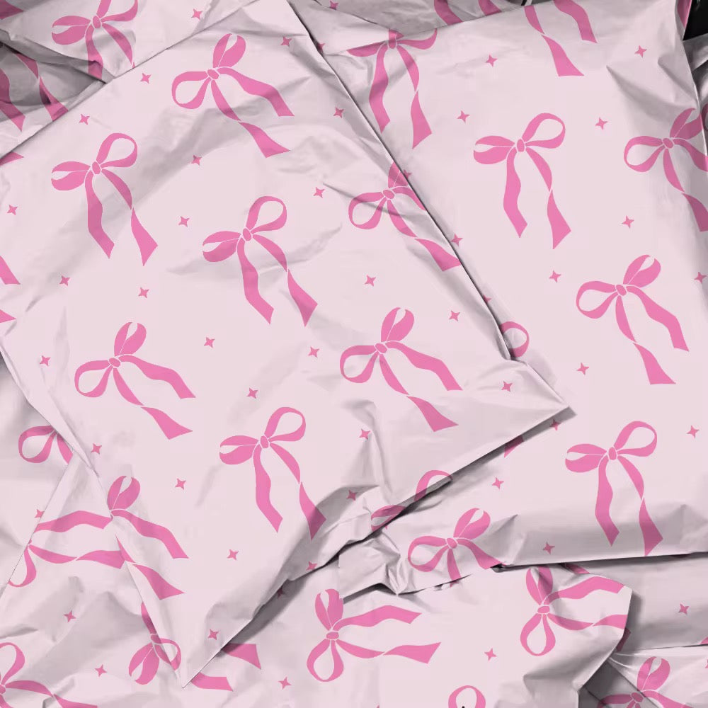 Pink Bow Poly Mailer Bag - Waterproof & Double Sided - Designer Premium Packaging ( 10:13 inch )