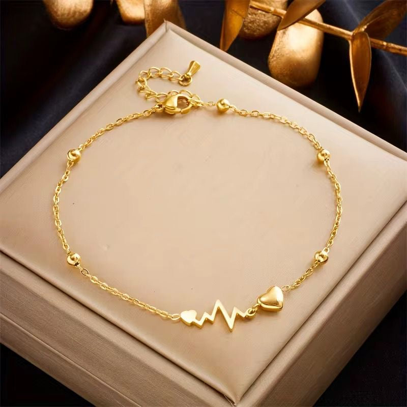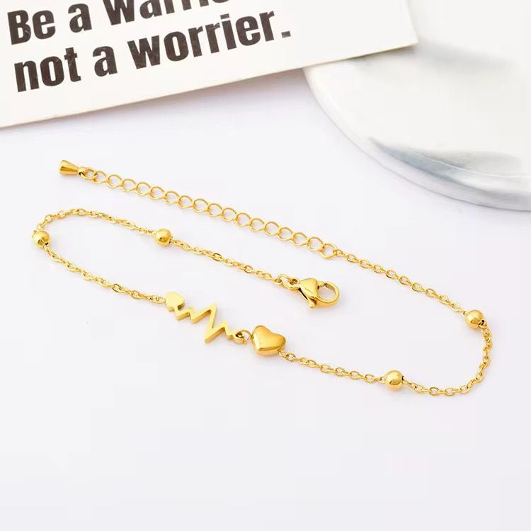 SJ 708 Heart beat Dainty Anklet - 18k Gold PVD plated stainless steel - Anti tarnish