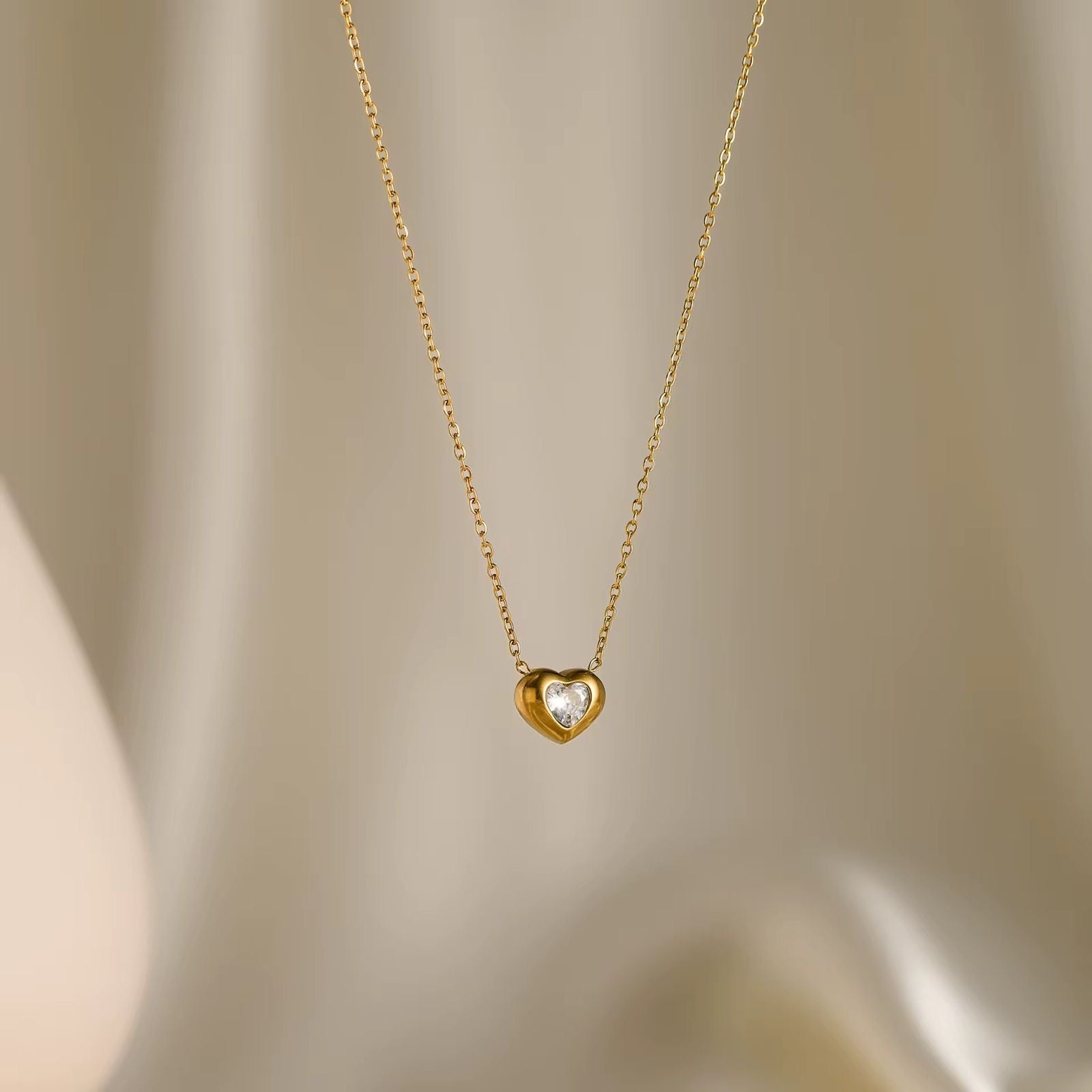 SJ 796 Dreamy White Zircon Heart Dainty Necklace - 18k Gold PVD plated stainless steel - Anti tarnish
