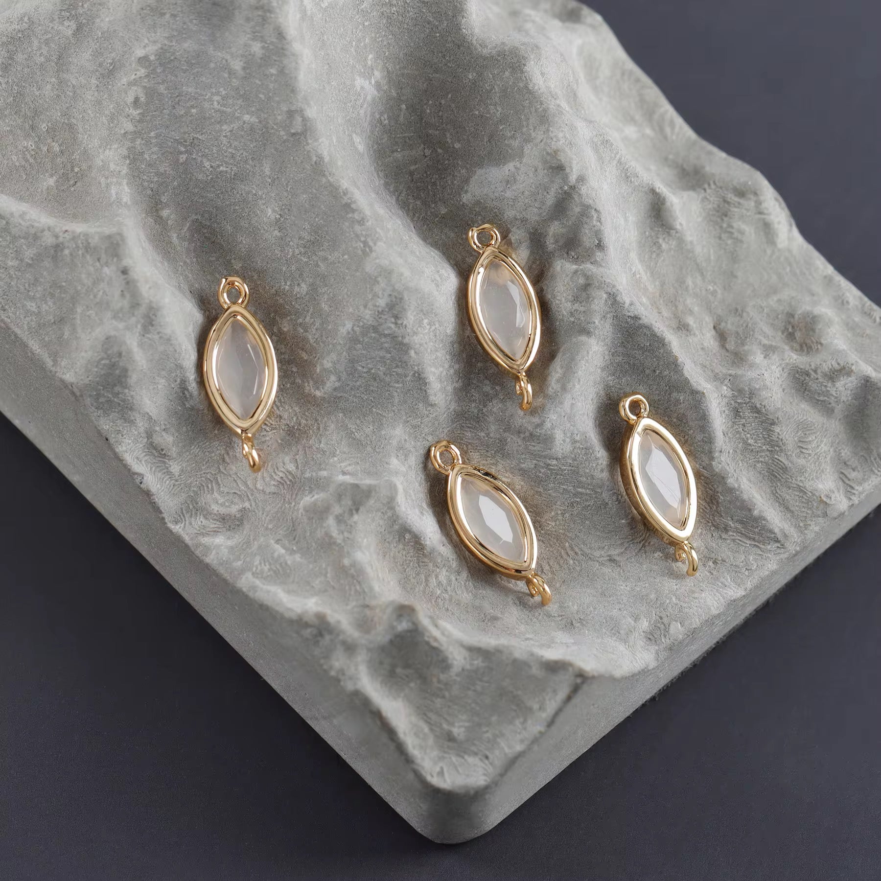 SS 3177 White Petal Zircon Connector 18k gold plated charm ( 1 pc ) anti tarnish ( 14*5mm )