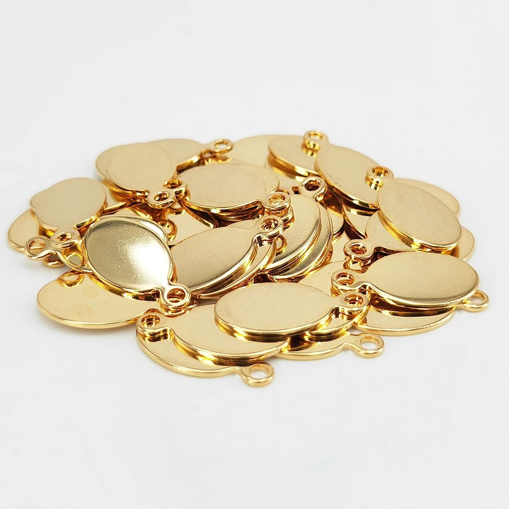 SS 1011 - Oval shaped gold plated Stainless steel stamping blank ( 1 pc ) Anti tarnish